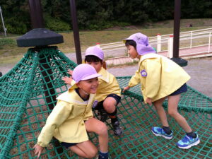 今の子どもたちに合っている遊具がたくさんで、様々なすべり台や登ったりにチャレンジしたりして、出来るようになると「先生!できた~!」と喜んでいました。
