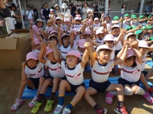 年長さんは「運動会」が終わった後、クラスで記念写真撮影。年長さんの胸には一人ひとりやりきったという思いがいっぱいつまっていたと思います。