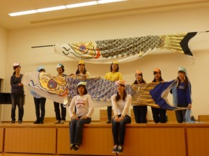 ・先生から子どもの日の話をしてもらいました。子どもの日とは男の子も女の子も、みんな元気にすくすく育ちますように・・・そして鯉は川を登っていく強い魚なのでこいのぼりの様に強い子に育ちますようにとお祝いする日です。
