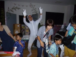 この夏祭り会は「お家の人と一緒に遊ぶ・触れ合う」事を大きなねらいの一つとしておりますので、お家の人を巻き込んでの活動となります。