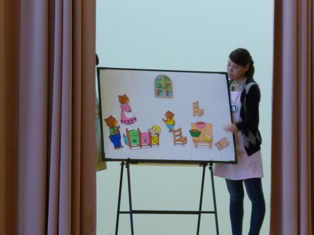 お楽しみの最後は、ペープサート「3匹のくま」です。