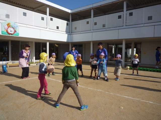 たっぷり遊んでもらった後は一緒に手あそび(やきいもグーチーパー・げんこつ山のジャンケンポン)をやりプレゼントをもらい大喜びでした。