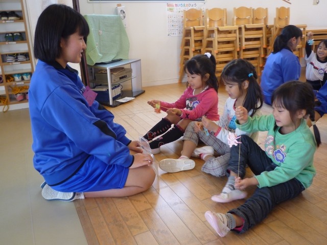 11月27日~12月4日の間の5日間、年中、年長の部屋に掛川市立北中学校の2年生が家庭科の授業の一環として