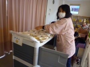 その間に布団を敷き給食の準備。チームワークはバッチリです。