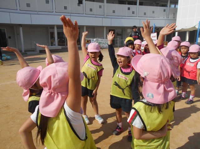 未来のなでしこジャパンも男の子に負けていません。「がんばるぞ、オー!!」