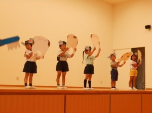 みんなでステージの上のお友だちに歌のプレゼントです。