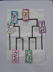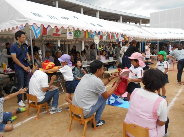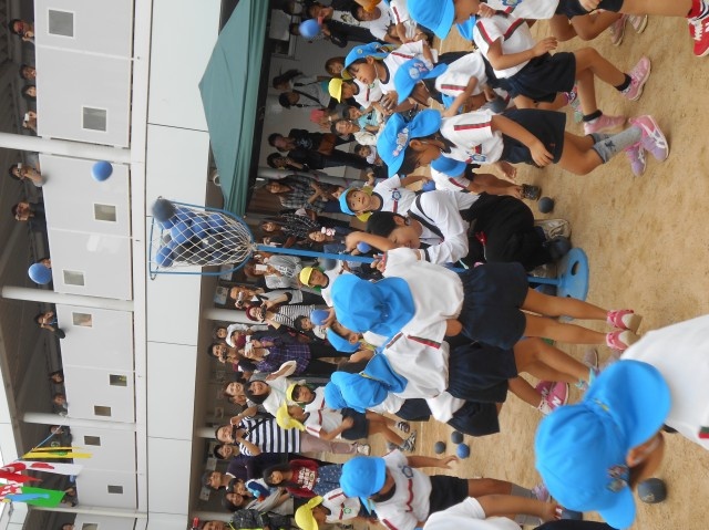 年中のこあら組が赤玉、ぱんだ組が白玉、いるか組が青玉で