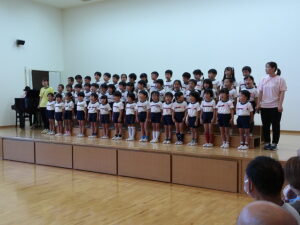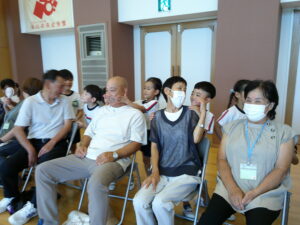 まず初めはステージの上で【がんばりじわとにこにこじわ】【手のひらをたいように】を元気いっぱい歌いました! 中には感動して涙を流す方も…💧