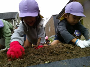 お手伝いのお家の方(長/学級委員・長/てつだいくらぶ)にも助けてもらいながら、掘っていきました☆