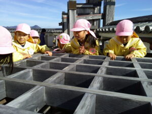 昔の日本の文化に触れる事ができ、とても楽しい思い出になりましたね。天守閣の中にも「入りたーい!」と言っていた子どもたち。ぜひご家庭でも行ってみて下さいね!(今度こそは忍者に会えるかも!?)