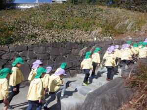 年長ともなると、足腰が強くなり、長い距離でもへっちゃら!園まで無事、歩いて帰ってきました!