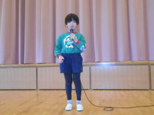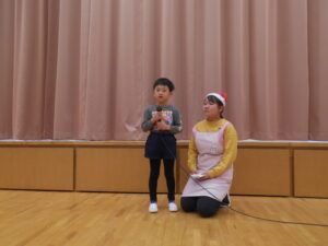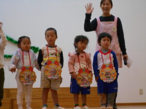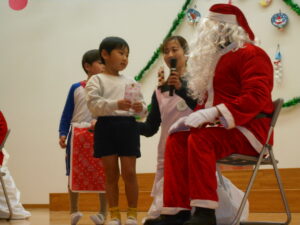 幼児組は、代表の子どもがでプレゼントをもらいました。