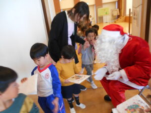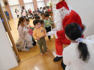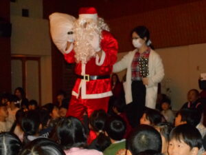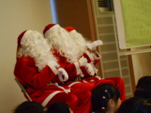 ジッと見つめる子、〖ありがとう!〗といって大事に包みを抱える子・・・その子その子の中にサンタさんがいるんだなと感じました。