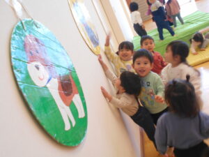 「あけましておめでとう」「ことしもよろしくおねがいします」「おとしだま」「おせち」「はつもうで」等、いつもと違ういろいろな言葉を、年齢に応じて伝えたいですね。年長児の中には、「親戚の人と集まって、いとこと遊んだ!」と教えてくれる子もいました。大人が使っている言葉をちゃんと聞いているんですね。