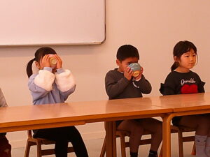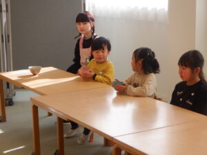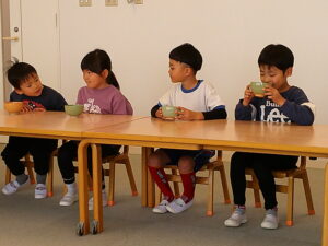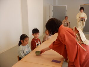 緊張しながらも、隣のお友だちに「おさきに」と声をかけてからお抹茶をいただきました。