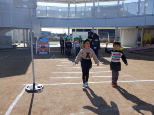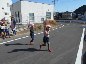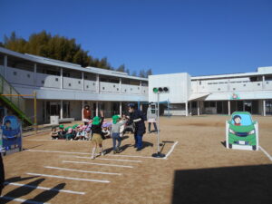 園庭では、模擬信号機を使って信号がある横断歩道も渡りました。