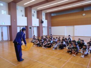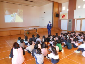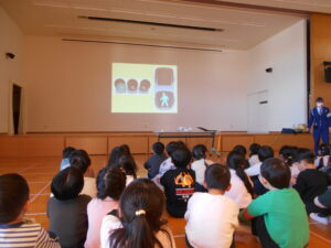 13日(金)に掛川警察署の交通指導員さんによる交通安全教室を行いました。