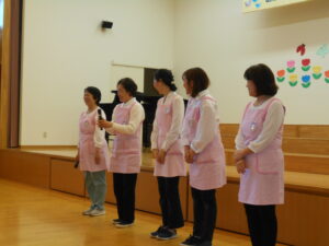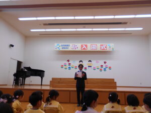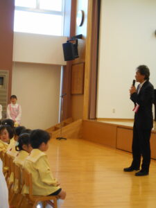 理事長先生の話や保護者会会長さんの話を聞き、園長先生から先生方の紹介をしました。
