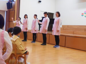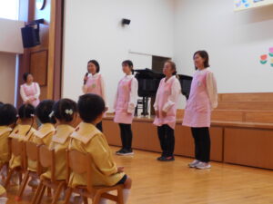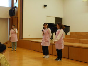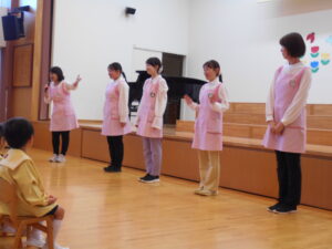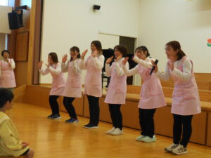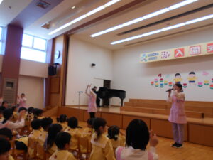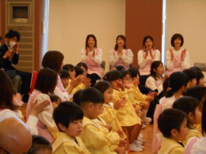 子どもたちは、園歌や手遊びでリラックスムード(笑)