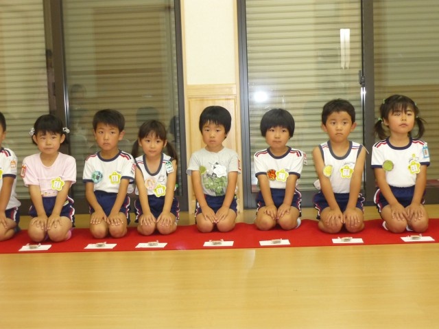 さて、子どもたちがお部屋に入って来ました(^v^) 子どもたちも室内の雰囲気を察したのか、ちょっと緊張気味(>_<)のようです。みんなしっかりと正座をして志村先生と対峙します。