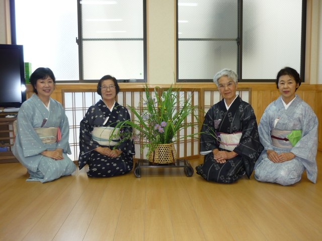 本日お手前をご披露して頂きます4名の方々です。皆さんしっかりとお着物を着て頂いて、今日は本格的にお茶を出して下さるそうです!! 実は前列右側は、くるみ幼稚園の姉妹園・掛川中央幼保園保育園部園長・志村房子先生なんですよ!志村先生は、ずっと以前にくるみ幼稚園にお勤めでしたので、園との関係は大変長く深いですし、お茶の腕前も実は免許皆伝クラス・・・?
